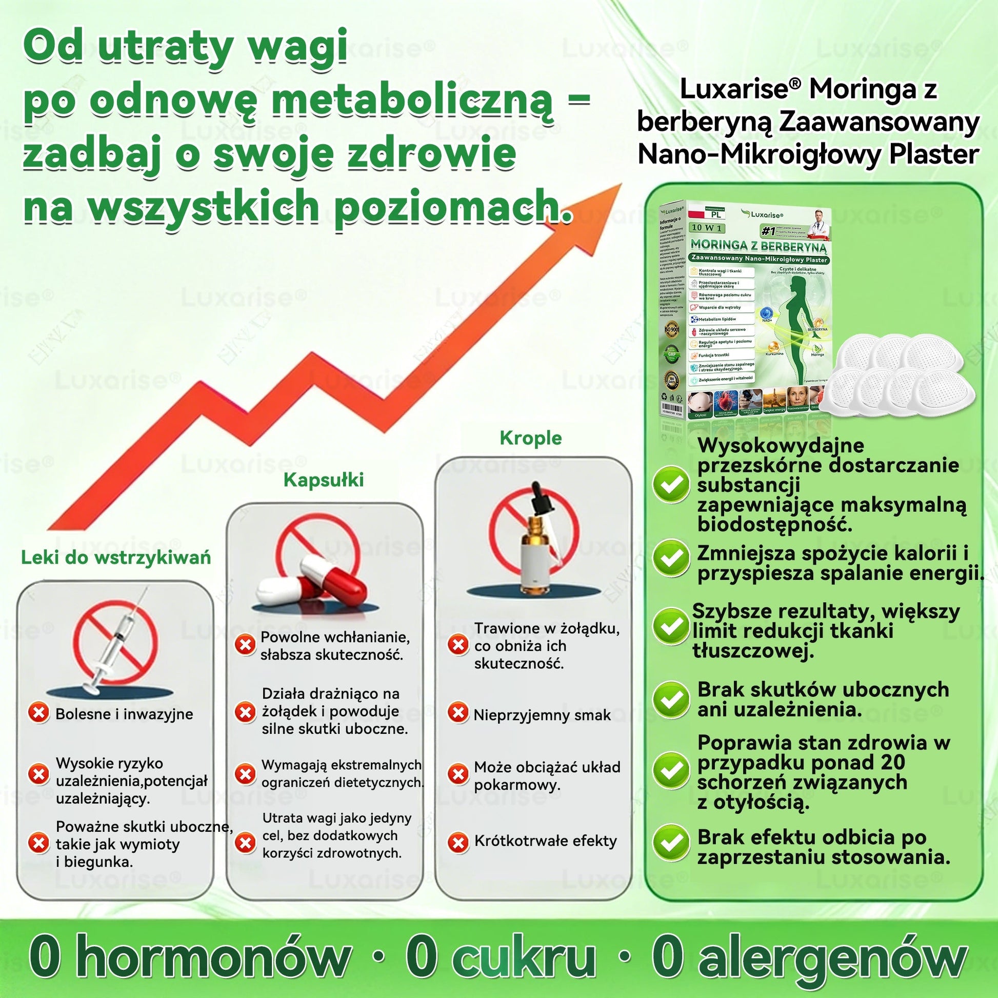 Wspierany przez współczesne badania medyczne,Pureluxo® MORINGA Z BERBERYNA 10W1 Zaawansowany Nano-Mikroigłowy Plaster przeszedł rygorystyczną polską certyfikację i przegląd regulacyjny, z formalnym uznaniem jego bezpieczeństwa, skuteczności i zgodności z przepisami. Reprezentuje naukowy postęp wykraczający poza tradycyjne rozwiązania Moringa, oferując naturalną, bezpieczną i skuteczną opcję dla osób poszukujących kompleksowego wsparcia metabolicznego i długoterminowej kontroli wagi.”