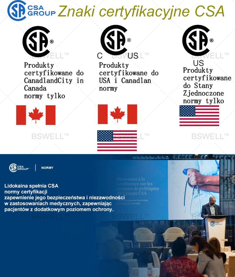 jest autoryzowanym organem certyfikującym upoważnionym przez rząd Kanady. Pracuje nad zapewnieniem, że produkty spełniają najwyższe standardy bezpieczeństwa, wydajności i jakości dzięki rygorystycznym testom. Certyfikat CSA to globalnie uznawany znak jakości, obejmujący różne sektory, w tym medyczny, elektryczny i dobra konsumpcyjne, zapewniając bezpieczeństwo konsumentów i skuteczność produktów.