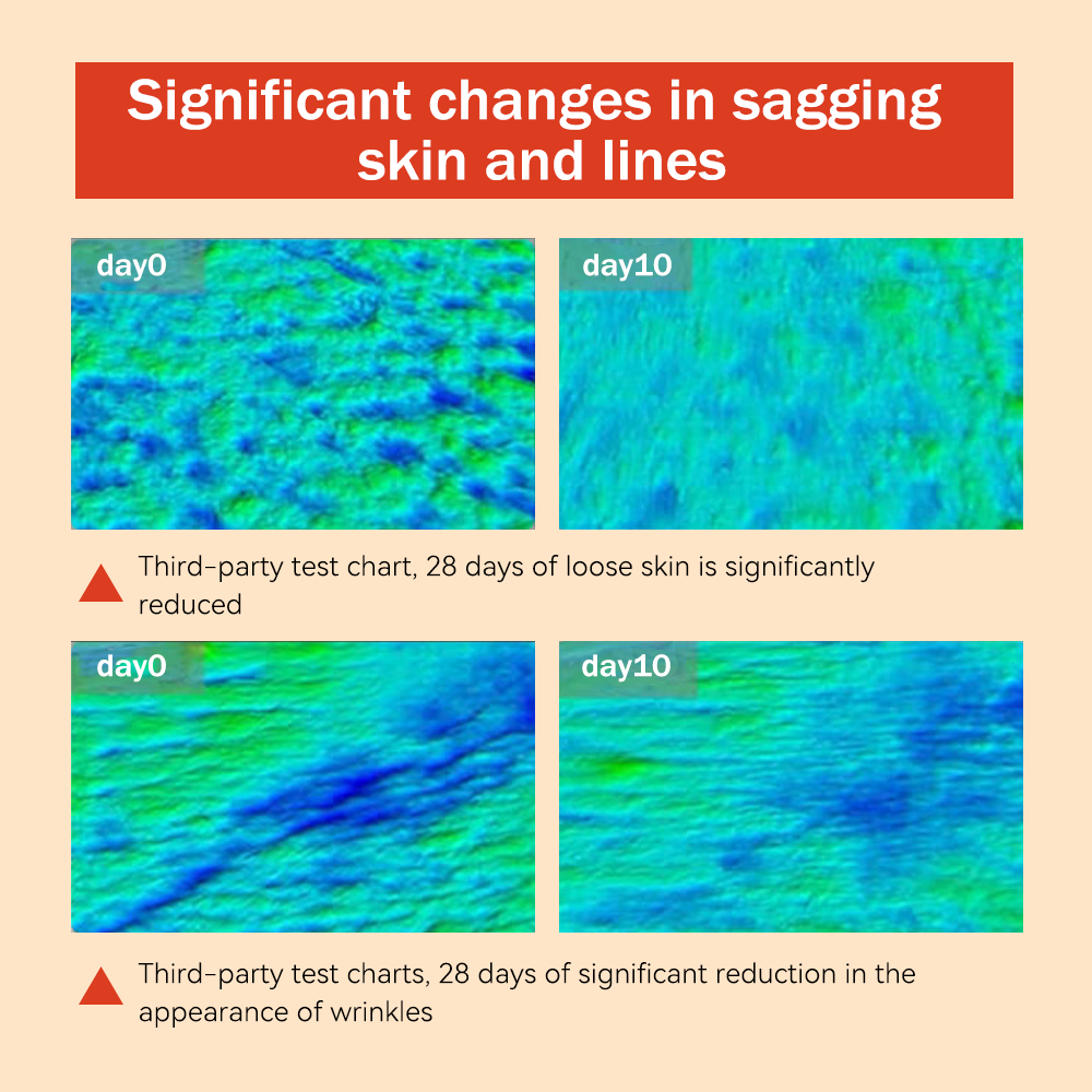 - Klinicznie udowodnione rezultaty: Redukuje drobne linie, zmarszczki, napina i ujędrnia skórę, zapewniając zauważalną poprawę.