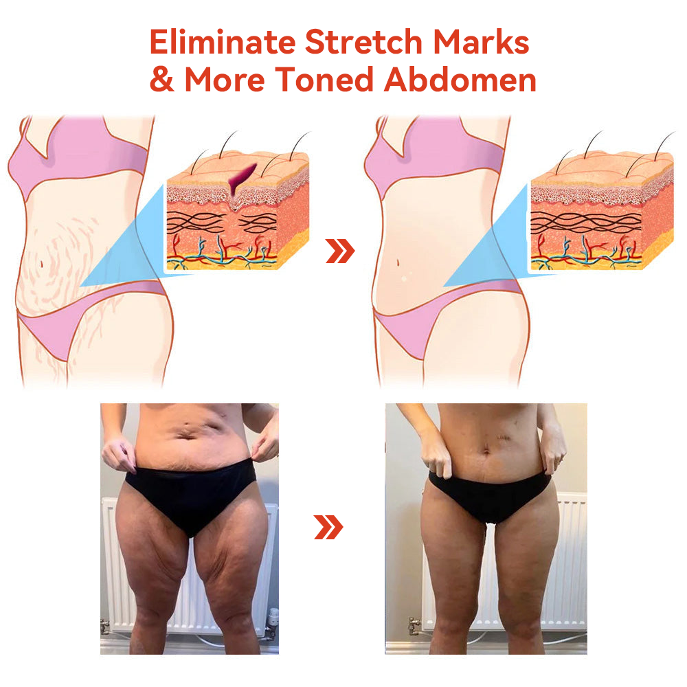 - Działanie przeciw rozstępom i odchudzające: Redukuje rozstępy, jednocześnie ujędrniając i wyszczuplając.